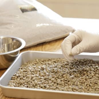 厳しくチェックし、使える生豆以外は手作業で取り除いています。